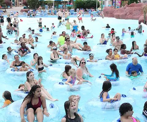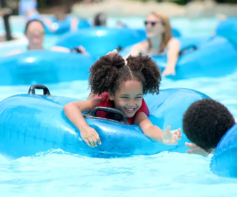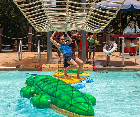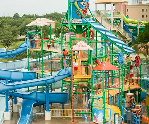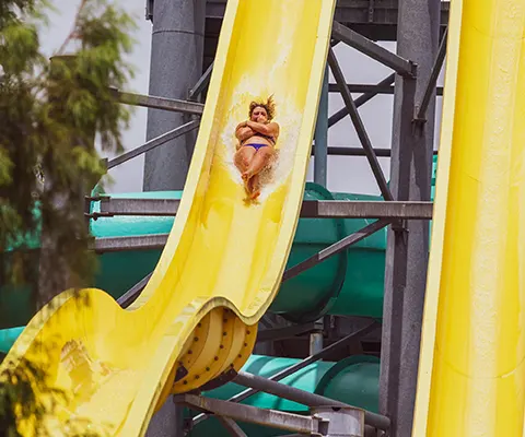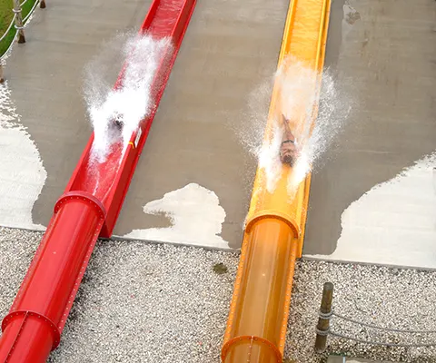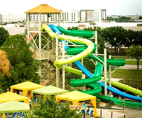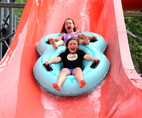 Three twisting, turning, inner-tube slides for one or two riders from the 45-foot tall Aloha Tower. Choose your adventure – the red half-and-half enclosed, the orange fully enclosed or the red fully opened slide!
